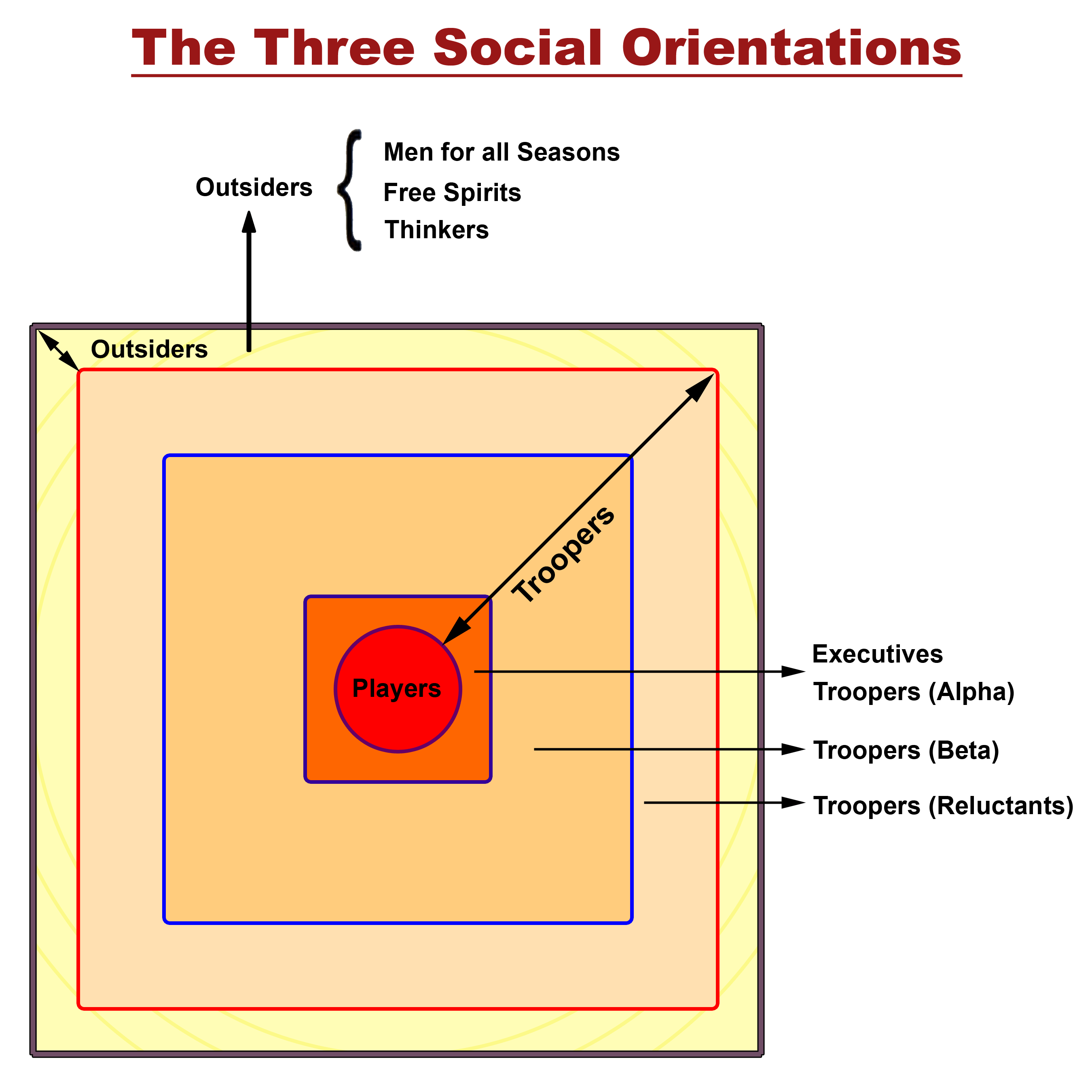 In the normal course of events, the Players rise to dominate the group - subordinating the Trooper, and marginalizing the Outsider. At this